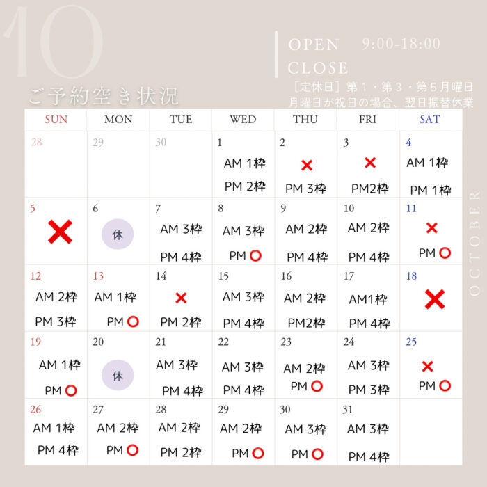 《9月》《10月》空き状況