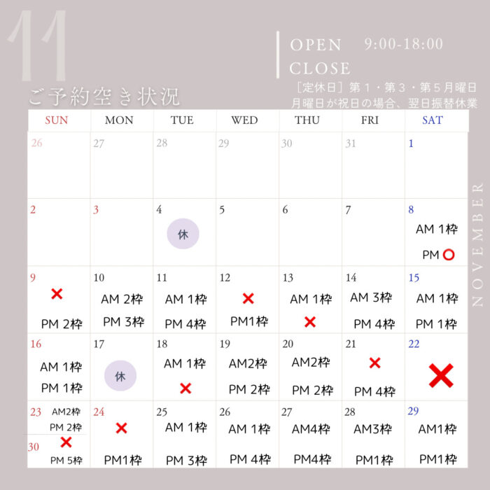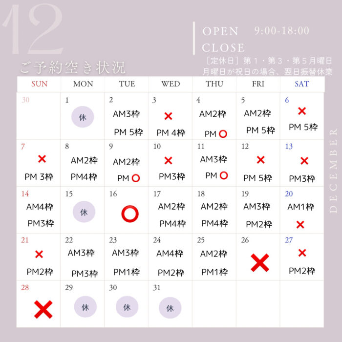 × 予約満 休 定休日