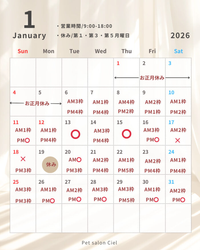 日頃よりペットサロンCielをご愛顧いただき誠にありがとうございます。