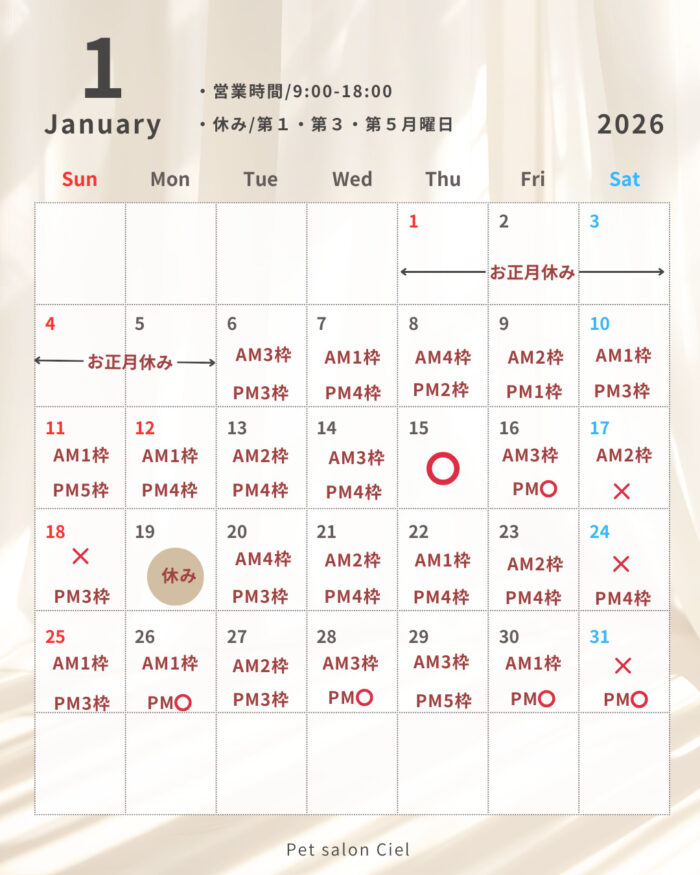 日頃よりペットサロンCielをご愛顧いただき誠にありがとうございます。