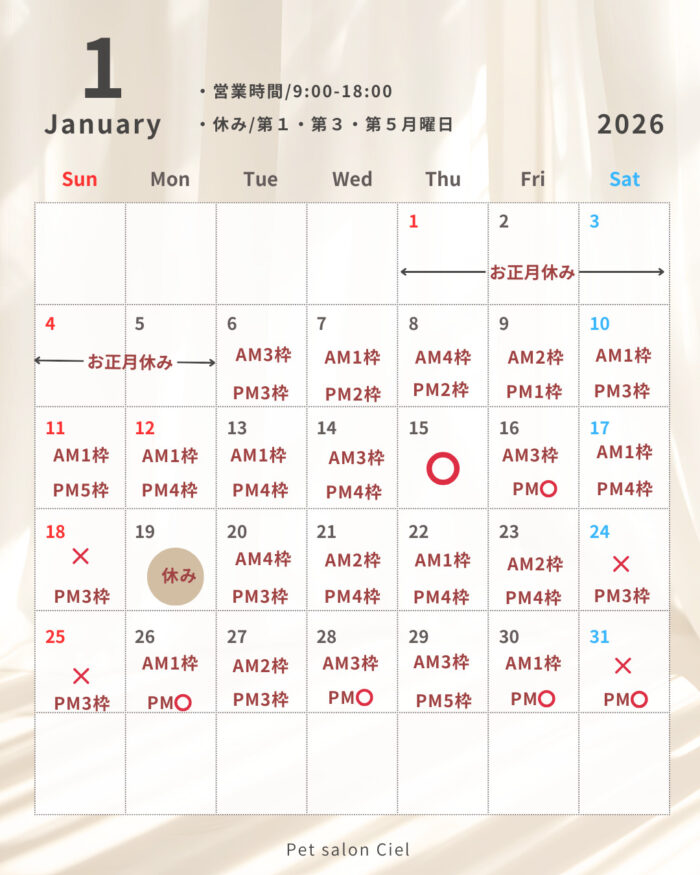 日頃よりペットサロンCielをご愛顧いただき誠にありがとうございます。